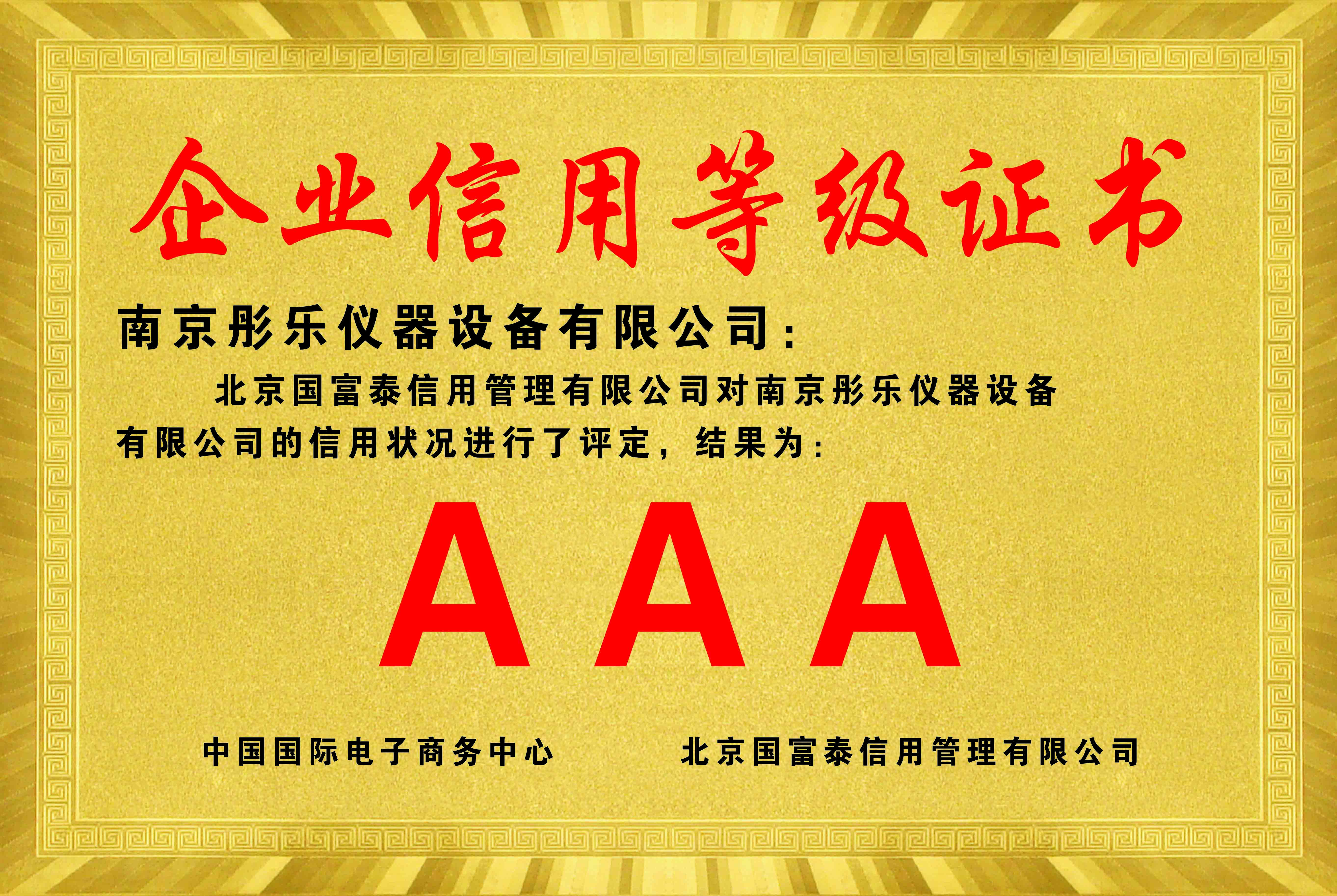 企業(yè)信用等級證書AAA