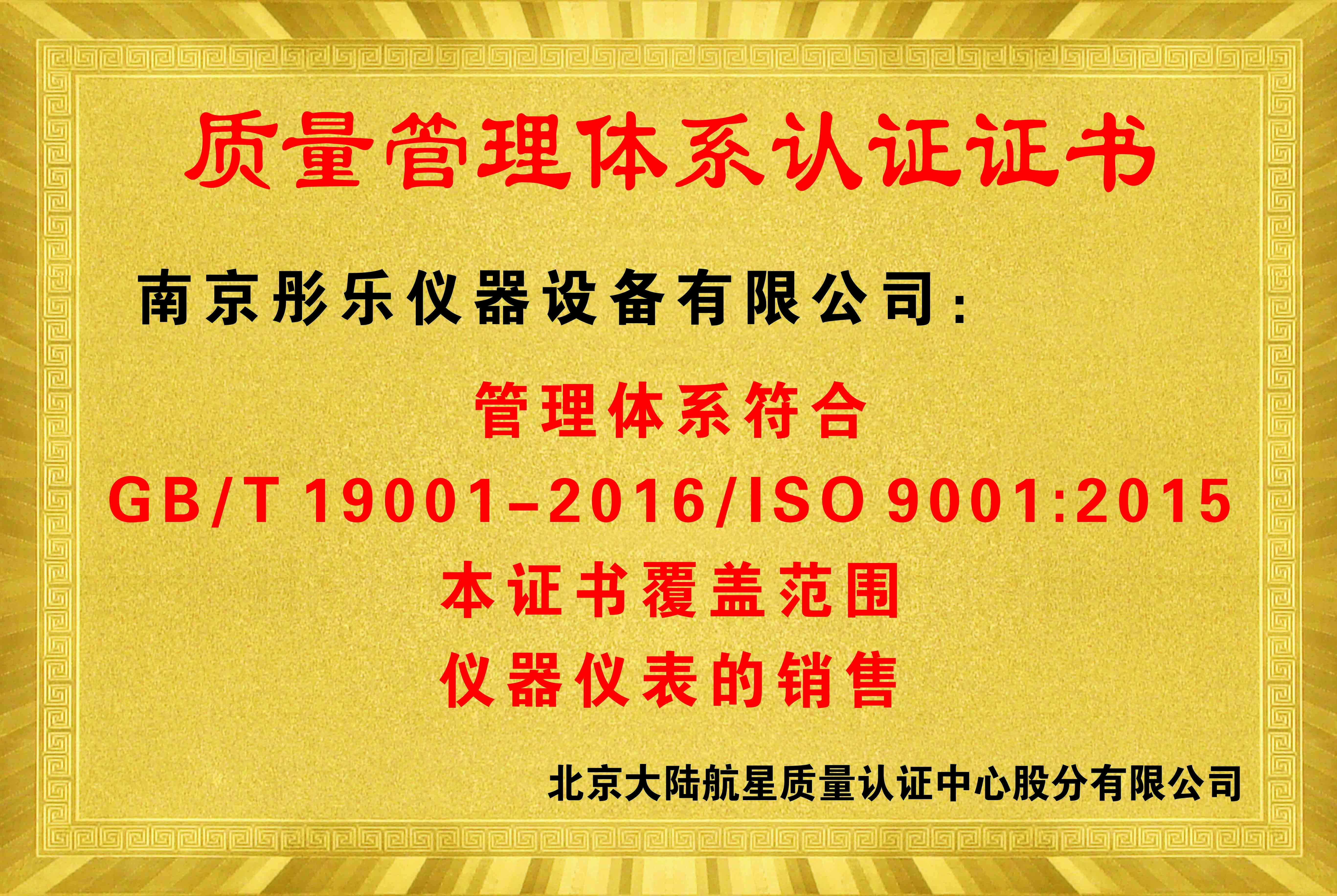 質(zhì)量管理體系認證證書